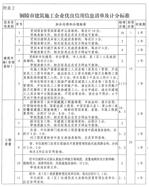2.銅陵市建筑施工企業(yè)優(yōu)良信用信息清單及計分標準