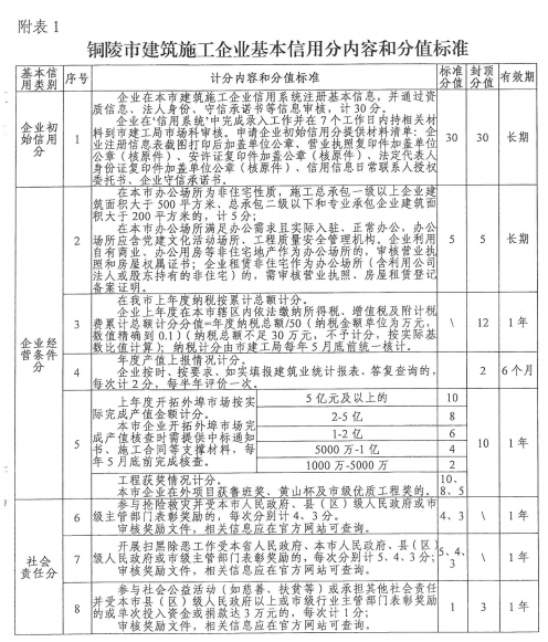 附表:1.銅陵市建筑施工企業(yè)基本信用分內容和分值標準