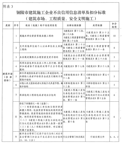 3.銅陵市建筑施工企業(yè)不良信用信息清單及扣分標準