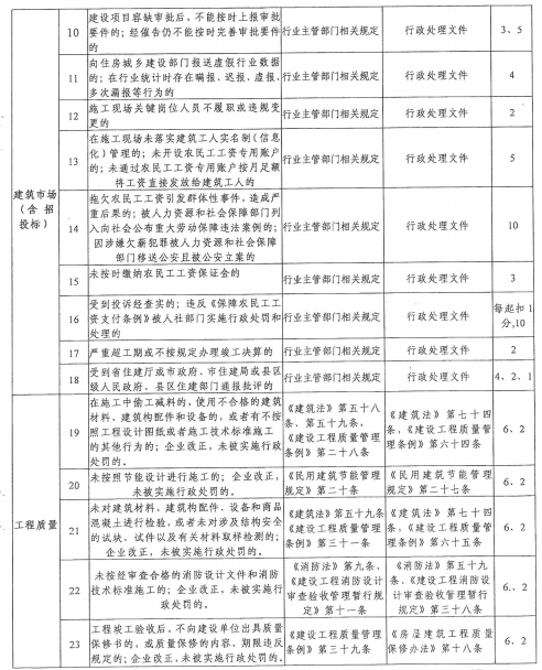 (二)建筑施工企業(yè)不良信用分是指建筑施工企業(yè)在工程建設活動中違反有關法律、法規(guī)、規(guī)章或工程建設強制性標準等,受到縣級以上住建部門行政處罰、行政處理的信用扣分,以及經有關部門認定的其他不良信用扣分。