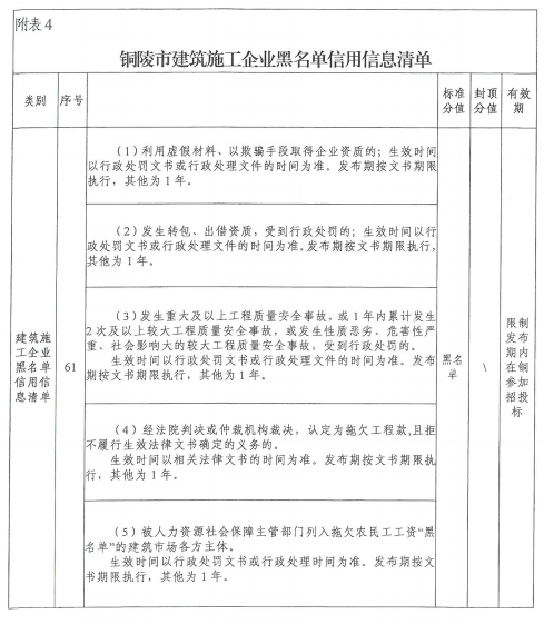 4.銅陵市建筑施工企業(yè)黑名單信用信息清單